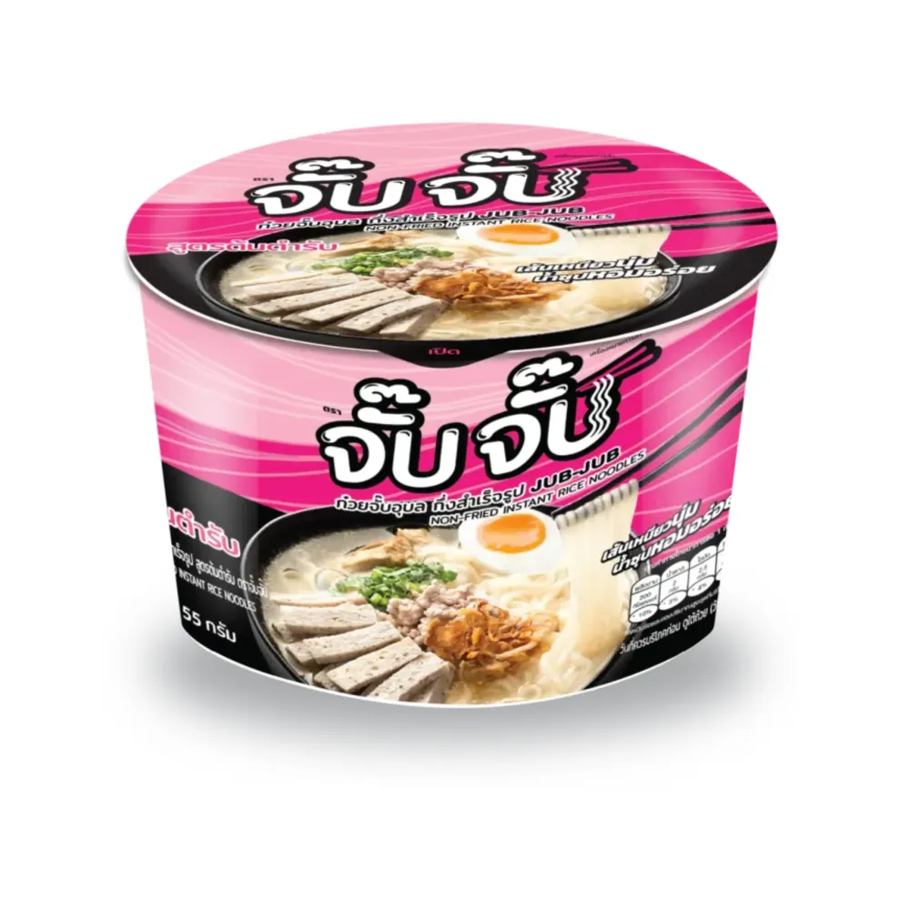 Indulge in the delicious and wholesome JubJub Non-Fried Chewing Chicken Rice Ramen Noodle Soup. Each bundle contains 3 packs of 85g noodles, perfect for a quick and satisfying meal. Made with high-quality ingredients, these noodles are non-fried for a healthier option. The savory chicken flavor combined with the chewy rice noodles creates a comforting and flavorful soup that will warm you up on any day. Easy to prepare and bursting with taste, this noodle soup is a must-have for any noodle lover.