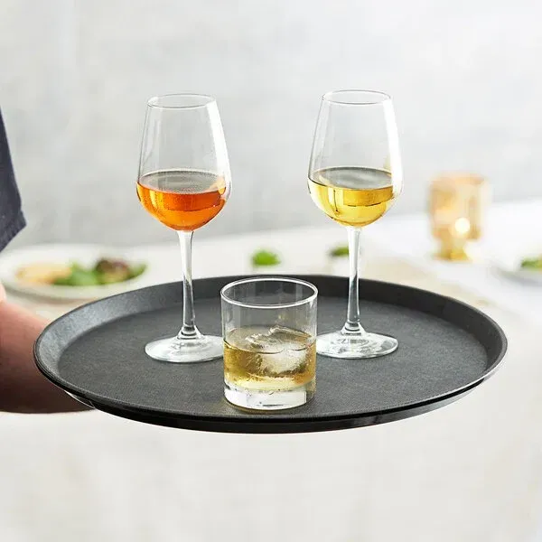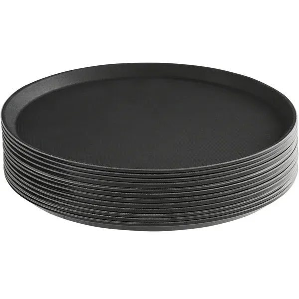This case of 12 round polypropylene non-skid serving trays in black is perfect for serving food and drinks in style and with ease. Each tray measures 16 inches in diameter, providing ample space for a variety of dishes. The non-skid surface ensures that items stay securely in place during transport, while the durable polypropylene construction makes these trays ideal for both indoor and outdoor use. Whether you're hosting a party, catering an event, or simply serving meals at home, these serving trays are a practical and stylish addition to any kitchen or dining collection.