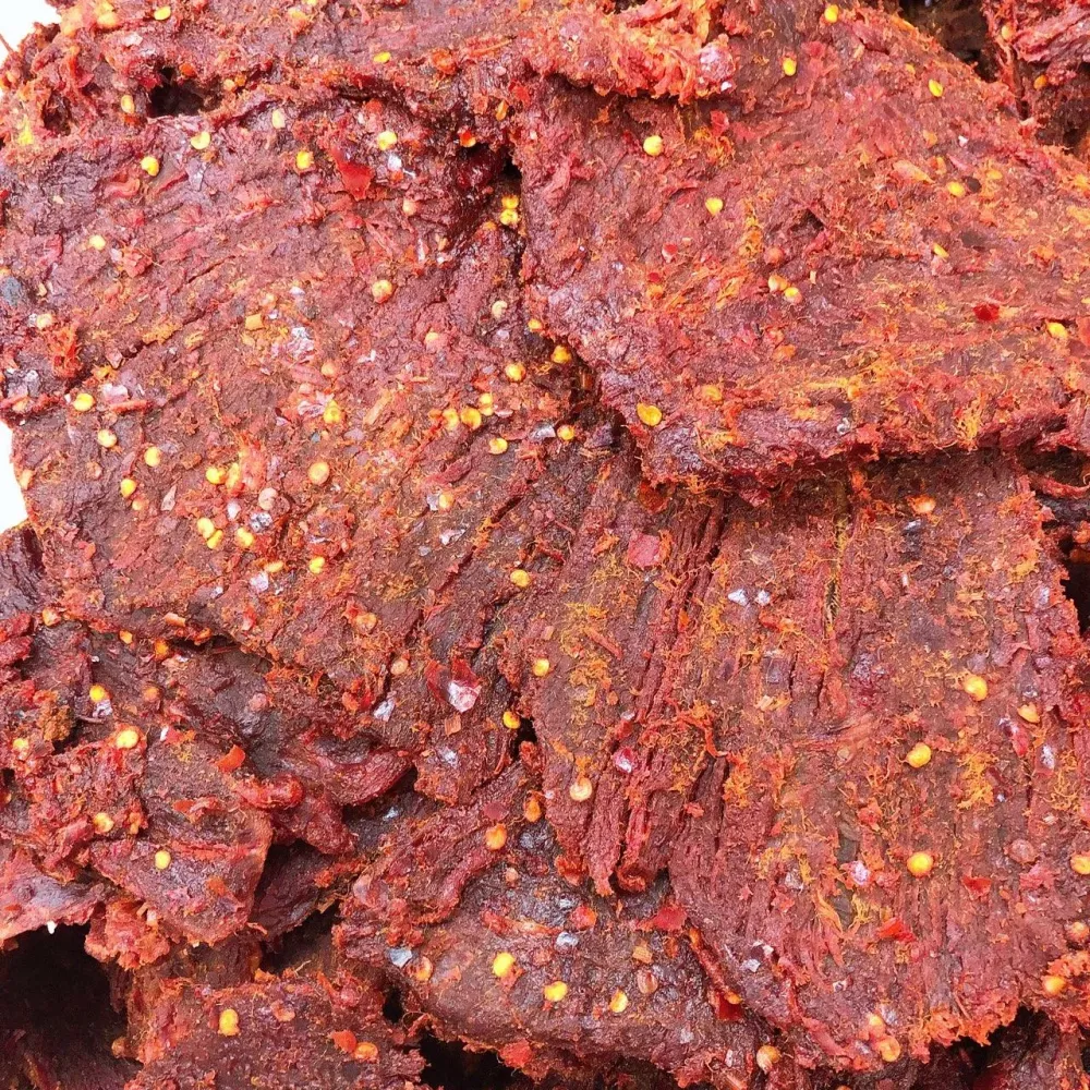 Indulge in the bold and fiery flavors of our Spicy Frank Beef Jerky - Khô Bò Cay Kiểu Pháp. Made with premium cuts of beef, this jerky is marinated in a special blend of spices to create a mouthwatering heat that will leave you craving more. Each bite is tender, flavorful, and packed with protein, making it the perfect snack for on-the-go or anytime you need a savory pick-me-up. This 0.5 lb (226g) pack is ideal for sharing with friends or enjoying all to yourself. Experience the delicious fusion of French-inspired flavors and spicy goodness with every bite of our Spicy Frank Beef Jerky.